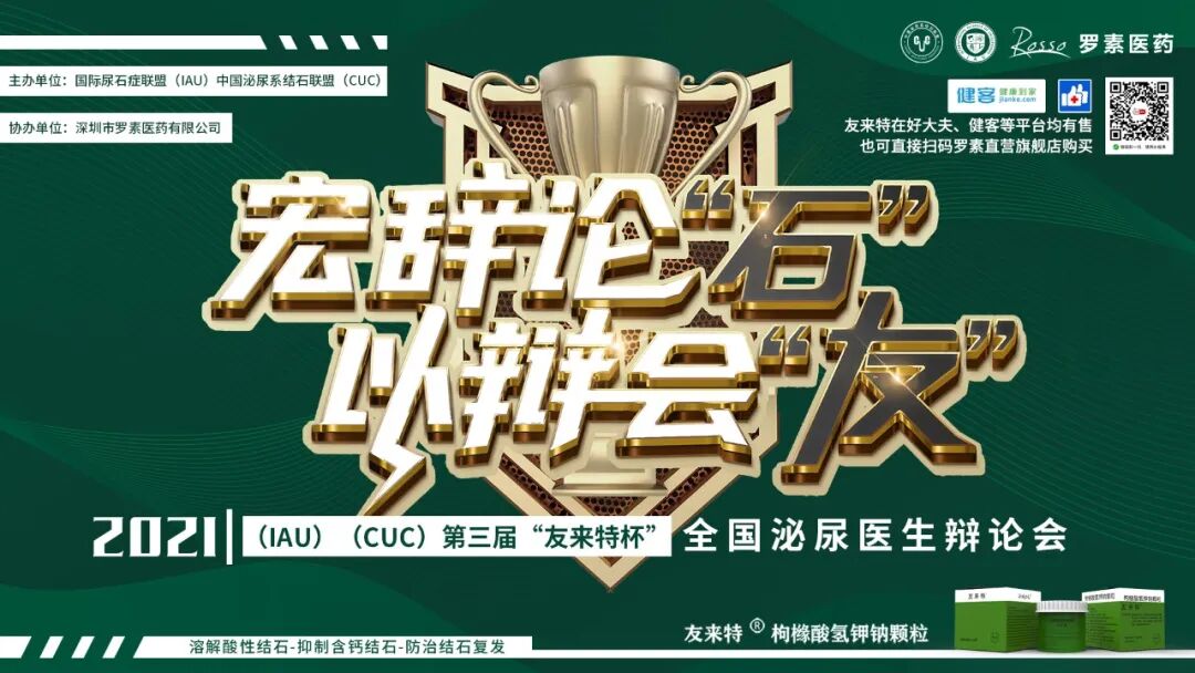 为继续加强泌尿系结石预防和诊治的交流,由中国泌尿系结石联盟(CUC)主办,深圳市罗素医药有限公司承办的2021年国际尿石症联盟(IAU)、中国泌尿系结石联盟(CUC)第三届“友来特杯”全国泌尿医生辩论会即将拉开帷幕。